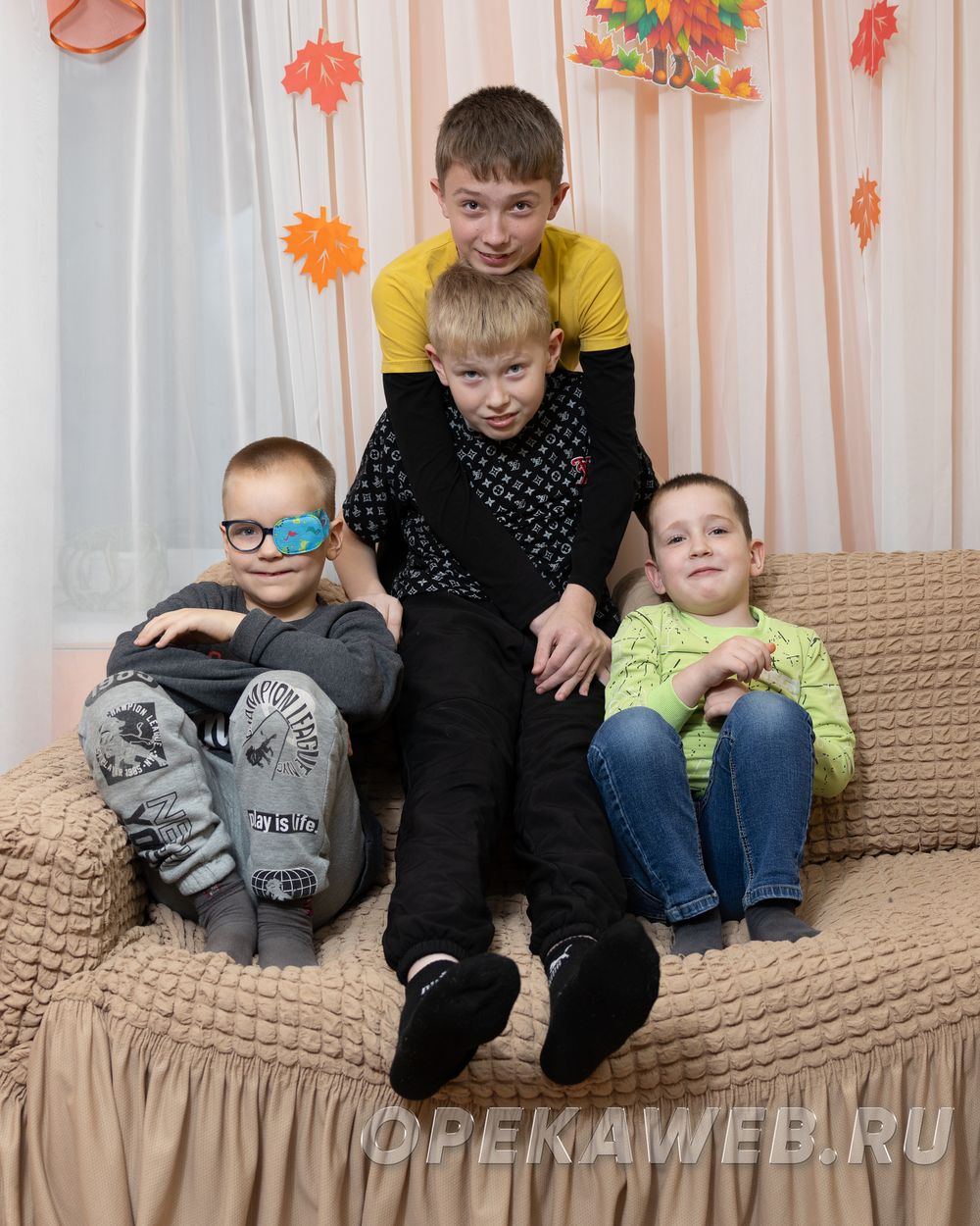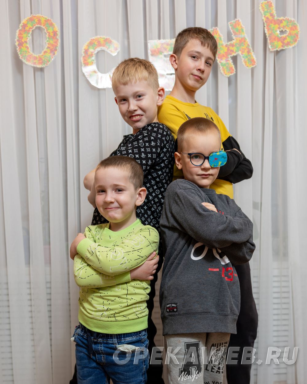 Слава, Максим, Даня и Марк — четыре дружных брата, которые стоят друг за друга горой. Марк — самый младший. Ему четыре года. На момент съемок он болел и не смог в них поучаствовать. Ребята и воспитатели рассказали нам, что Марк очень улыбчивый и жизнерадостный мальчик, он любит рисовать и играть в машинки. Пока Марка не было рядом, старшие братья успели поделились с нами своими планами на его день рождения. Каждый приготовил Марку подарок и с нетерпением ждал момента, когда можно будет его вручить. Дане шесть лет. Он готовится к школе и старательно занимается. Данька смешливый, активный и заводной. Он вовлекает в игру и веселье всех, кто с ним рядом. Любит рисовать, смотреть “Щенячий патруль” и хотел бы в будущем стать спасателем. Максиму девять лет. Он спокойный и добрый мальчик. Ему во всем помогает старший брат Слава. Слава учит с Максом уроки, помогает ему общаться. Славе тринадцать. Он ответственный и серьезный. Старательно учится в школе, усидчивый, добрый. Братья заботятся друг о друге, поддерживают и помогают. Это замечательные мальчишки, которым нужны родители. Важно, чтобы семья, в которую попадут Слава, Максим, Даня и Марк, была ресурсной, сильной и готовой к трудностям. (Публикация 2024 г.)